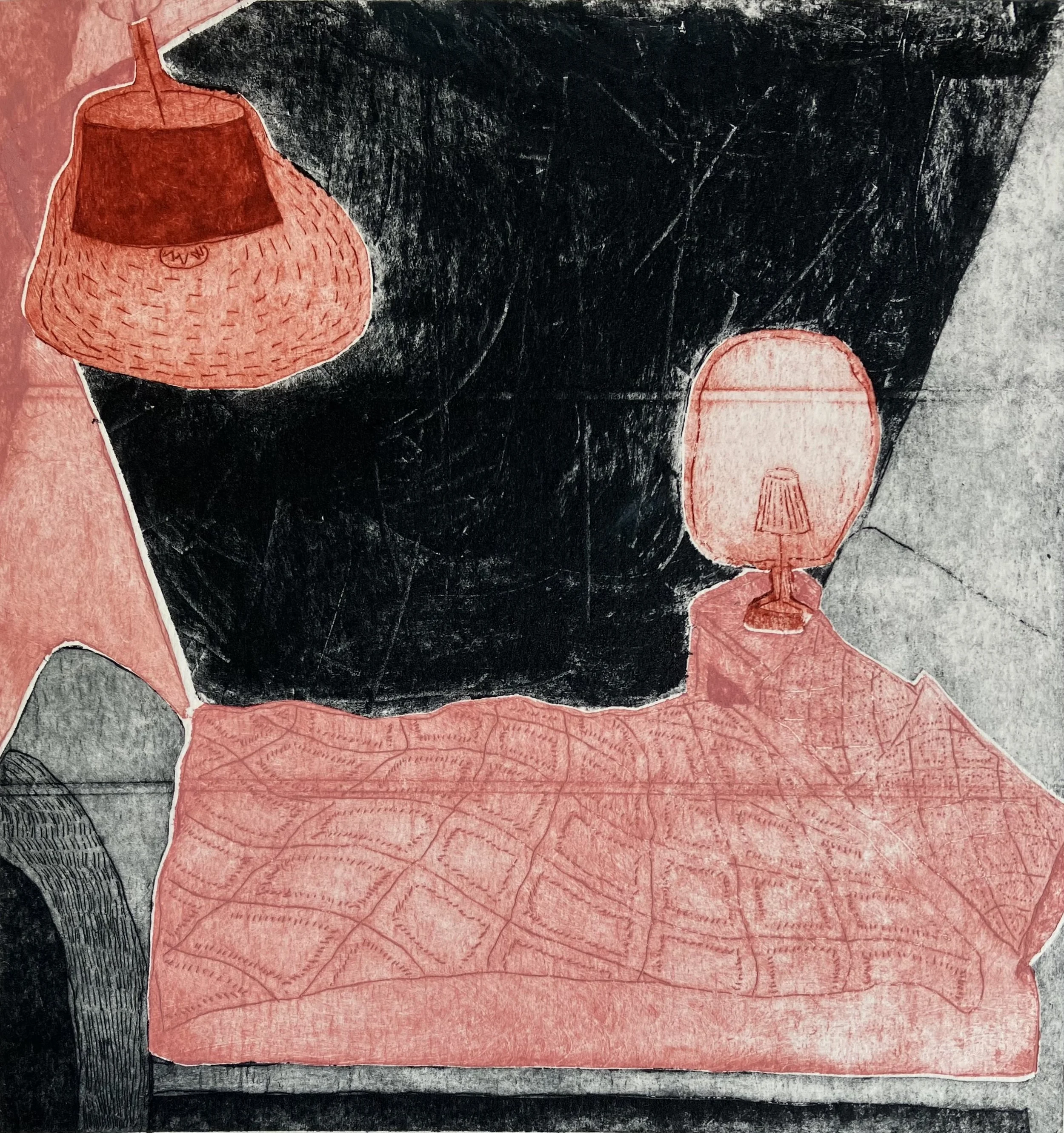 Night Bedroom - Pink Variation (2023)	Collagraph Print (19cm x 20cm)