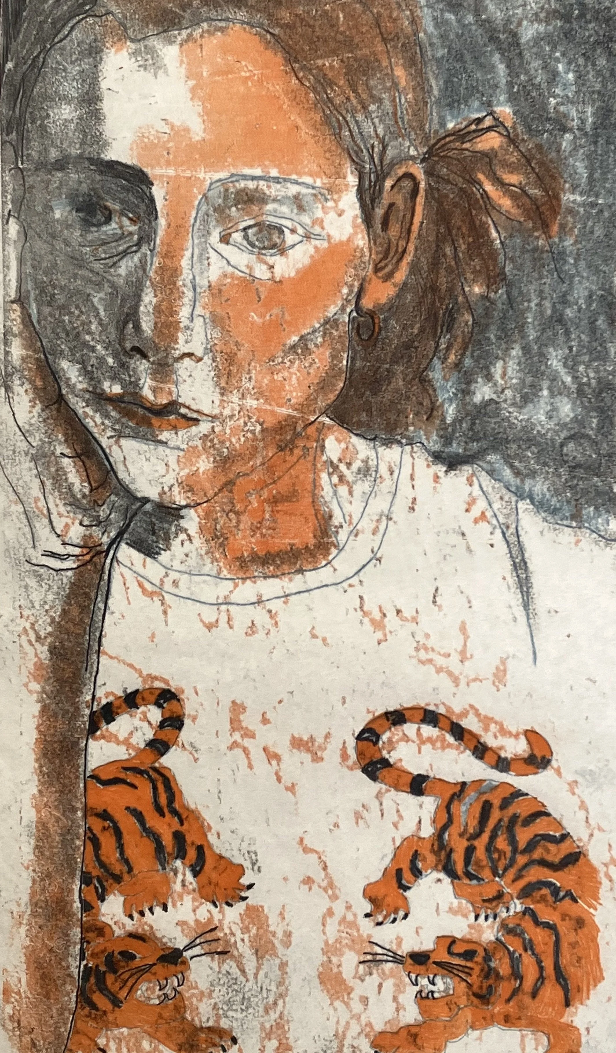 Woman in a Tiger T-Shirt (2023) Multi-Plate Monotype (25cm x 40cm)